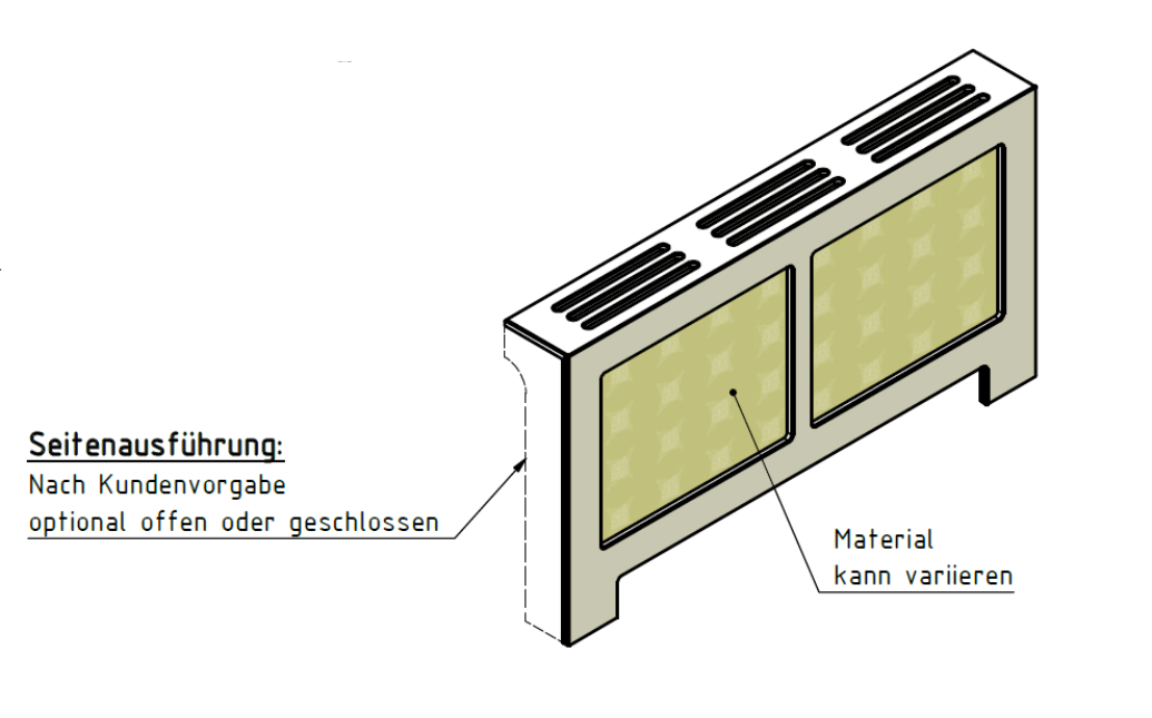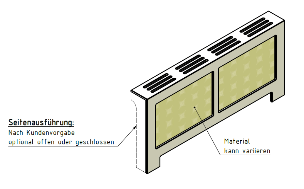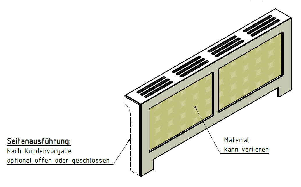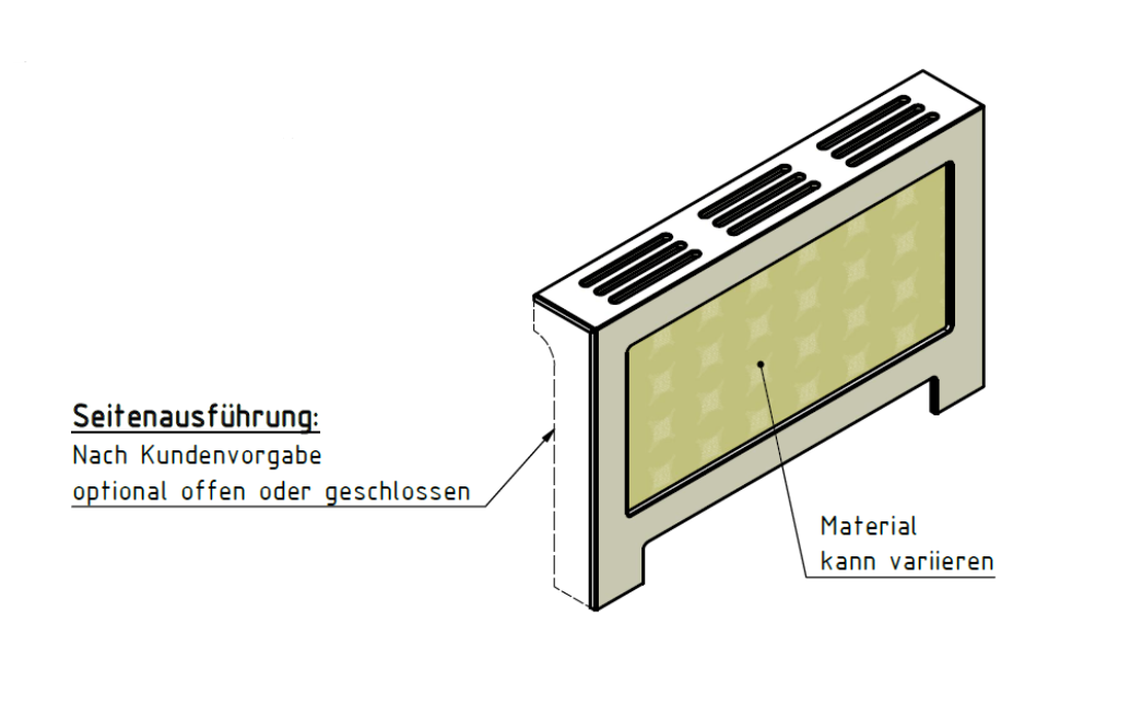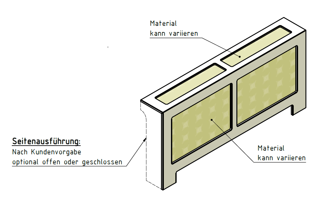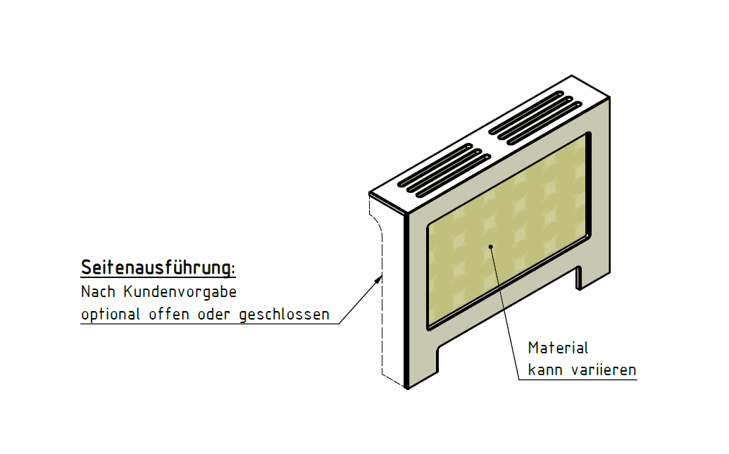 Ja. Standard ist links und rechts offen und mit einem AirSlot Top ‒ auf Wunsch aber auch einseitig oder beidseitig geschlossen und mit einem AirFlow Top.