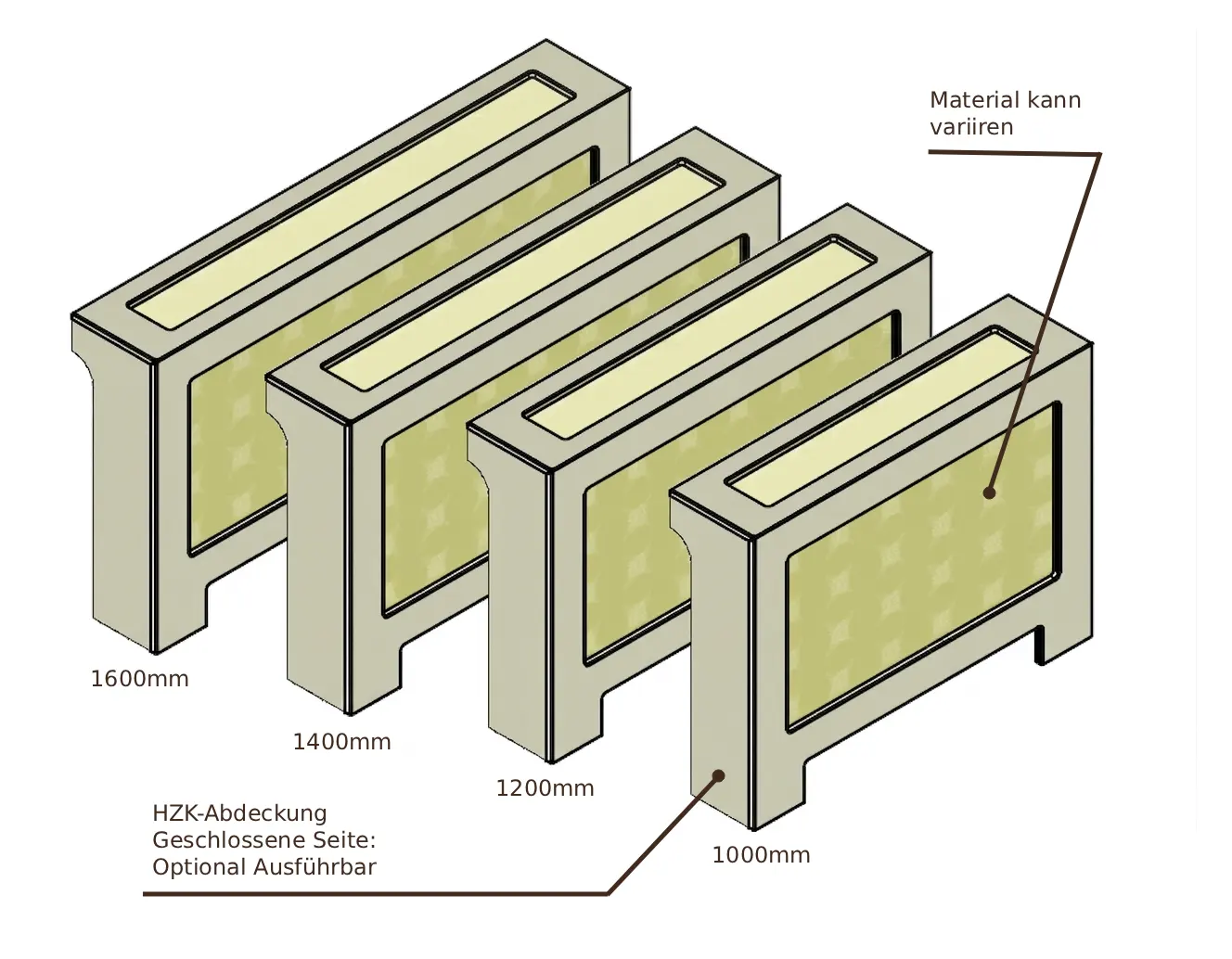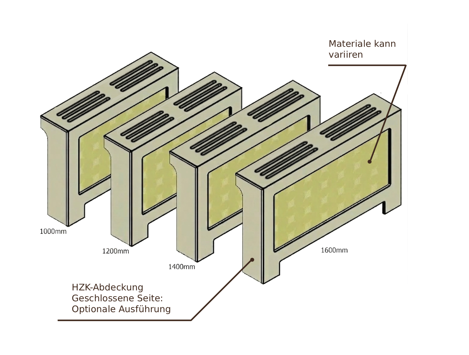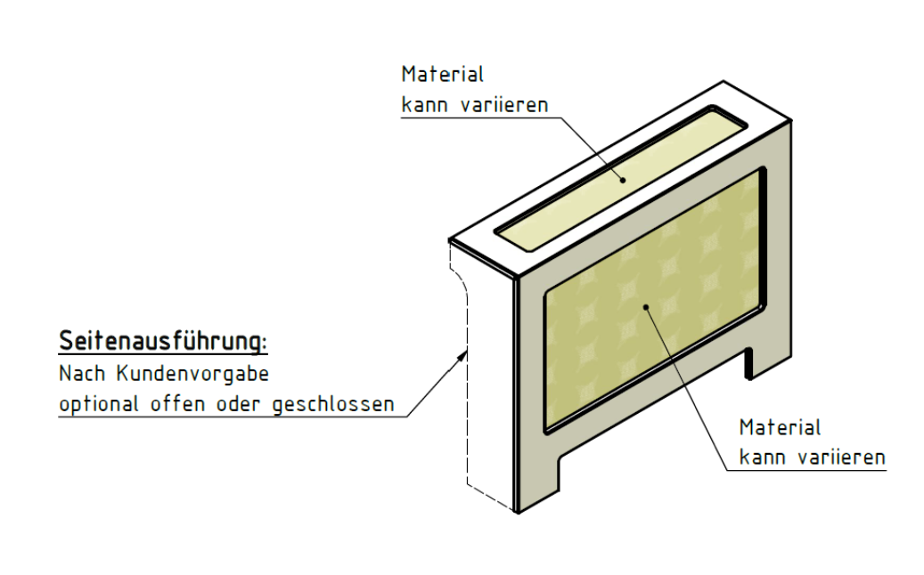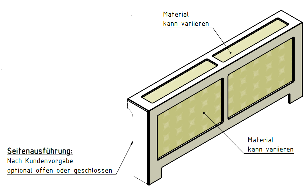 Ja. Standard ist links und rechts offen und mit einem AirSlot Top ‒ auf Wunsch aber auch einseitig oder beidseitig geschlossen und mit einem AirFlow Top.